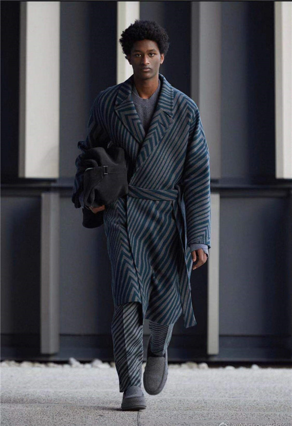善于设想男士正饰的Ermenegildo Zegna艺术总监Alessandro Sartori,在本季米兰男饰周上,也从头深思疫情下人以及衣服的干系。男士正饰的观点逐步被改动,寝衣、家居等元故旧融此中,针织Polo衫、大口包外衣等成为主打款,绑带式设想尤其凸起,使人想到浴袍。一名时髦界资深人士暗示,此前家居服的设想趋向是愈加时髦化以及潮水化,将来将是寝衣元素与男士正饰的设想互相交融,室外与室内、小我私家与群体、自力与密切之间的界线将被进一步恍惚。